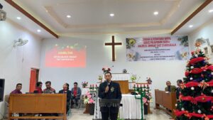 Palangka Raya, Cakrawala Pedia – Ibadah dan Perayaan Natal Seksi Pelayanan Bapak (SPB) Majelis Jemaat (MJ) GKE Sangkakala yang dilaksanakan pada Senin, 22 Desember 2025 di gereja Sangkakala, Palangka Raya, berlangsung dalam suasana penuh sukacita, kekeluargaan, dan kebersamaan, bertempat Gereja Sangkakala Jalan Delly Bangkan Palangkaraya.