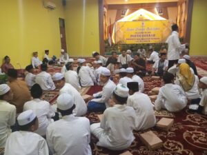Acara diisi tausiah oleh ustat sebelum berbuka, yang antara lain mengajak umat.semakin dekat dengan Allah,SWT.(drt).