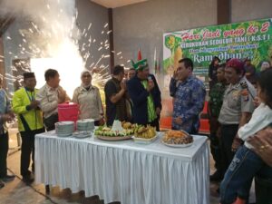 Acara puncak ditandai pemotongan nasi tumpeng, dan penyerahan bantuan untuk Poktan, dan ramah tamah bersama Wakil Walikita Achmad Zaini.(Red).